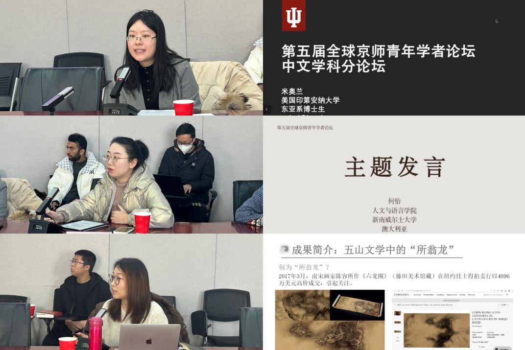 本次论坛分为文学专场与语言学专场,其中文学专场论坛由姚建彬教授主持,报告人依次为:美国伊利诺伊大学的张新歌、日本立命馆大学的高语莎、澳大利亚新南威尔士大学的何怡、美国印第安纳大学的米奥兰、北京师范大学的苗帅以及北京师范大学的杨柳青,与会学者的报告主题涉及比较文学、现当代文学、古代文学等方向。期间,熊修雨教授、杨俊杰副教授、刘全志副教授就与会学者的发言分别进行了点评与交流。