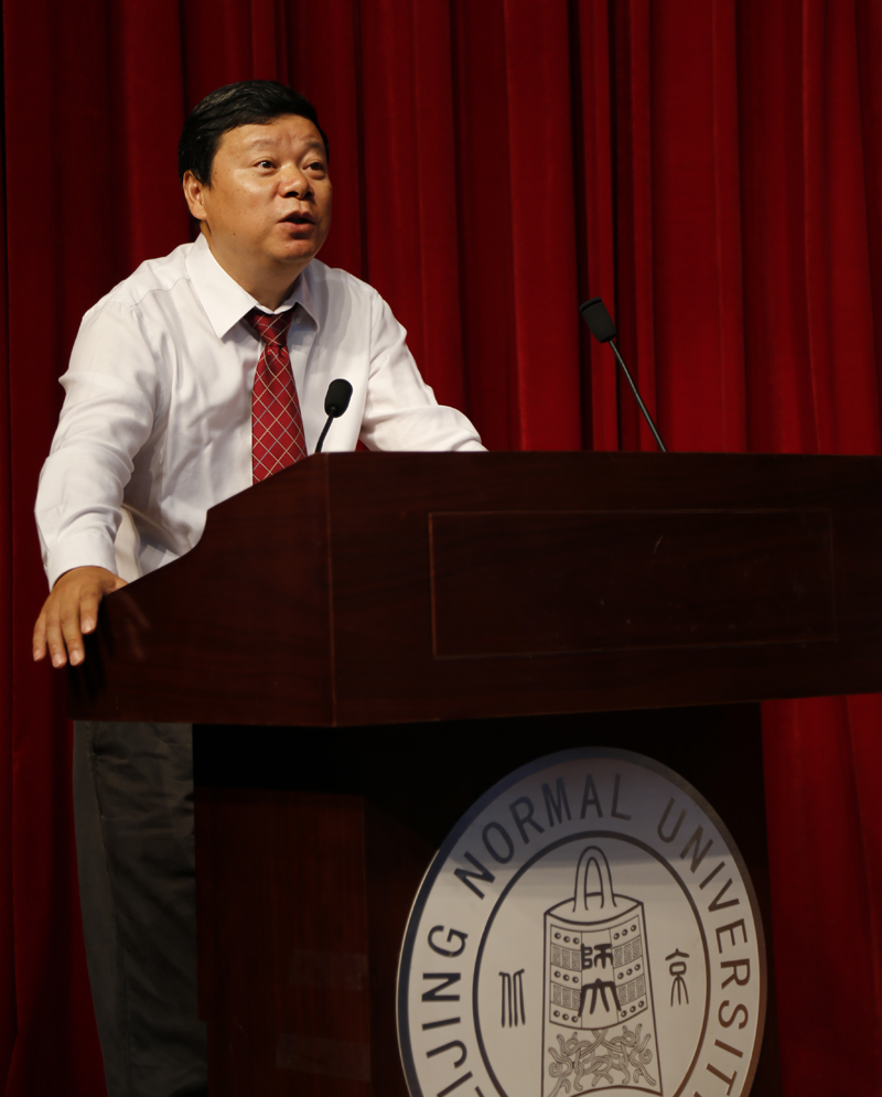 随后,教育部特聘长江学者、“马克思理论研究和建设工程”《20世纪中国文学史》首席专家,中国现代文学研究会常务副会长刘勇教授代表全院教师发言。他以切身感受对新生的大学生活进行了殷切指导。他认为,学问比文凭更重要。文学给予自我、他人、世界以情感碰撞,反馈直至一生。因此,新生要积极面对身份的变化,多读、多看、多走、少问,注重培养历史感与问题意识,提升自身品格与境界。努力学习,用心生活,为北师大注入更强大的生命力。