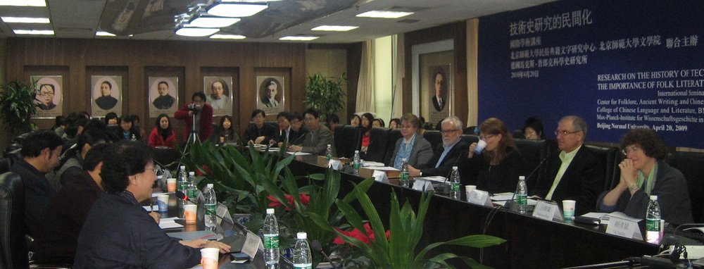 由北京师范大学民俗典籍文字研究中心、北京师范大学文学院和德国马克斯·普郎克科学史研究所(Max-Planck-Institute for Wissenschaftsgeschichte)联合主办中德国际学术讲座在北师大文学院成功举行。本次会议的主题是“技术史研究的民间化”,会议地点在文学院励耘学术报告厅。中德英法学者和研究生51人与会,文学院副院长刘洪涛教授出席了开幕式并致辞,北师大民俗典籍文字研究中心副主任董晓萍教授主持会议。