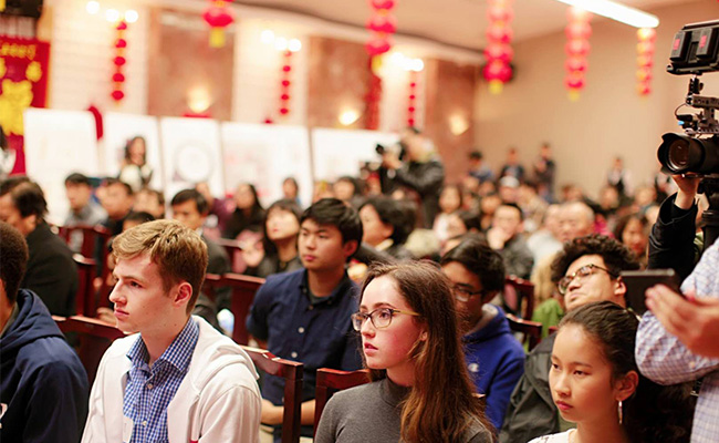 中国驻旧金山总领事罗林泉、首都文化创新与文化传播工程研究院院长于丹、北京师范大学汉字研究与现代应用实验室主任王立军、清华大学美术学院副教授陈楠、中国书法院外联部主任阎揆,共同为“汉字之美”2018全球青年设计大赛拉开了帷幕。来自旧金山、洛杉矶等地的众多嘉宾、师生及十多家媒体,共同见证了新一届设计大赛的启航。