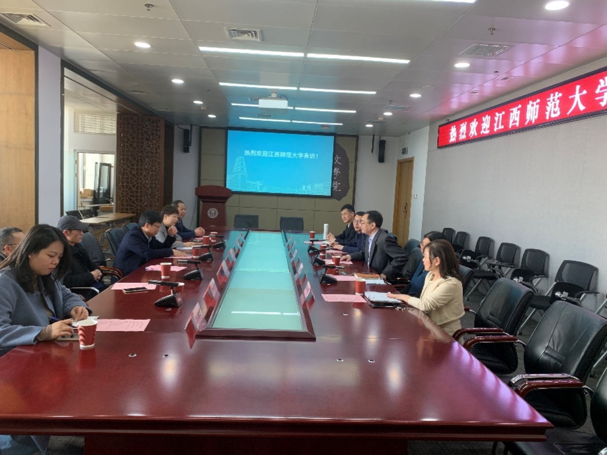 2023年3月29日上午,江西师范大学副校长汪洋、文学院党委书记宁洁、副院长张勇生,以及部分教师和辅导员代表一行前来我院访问。