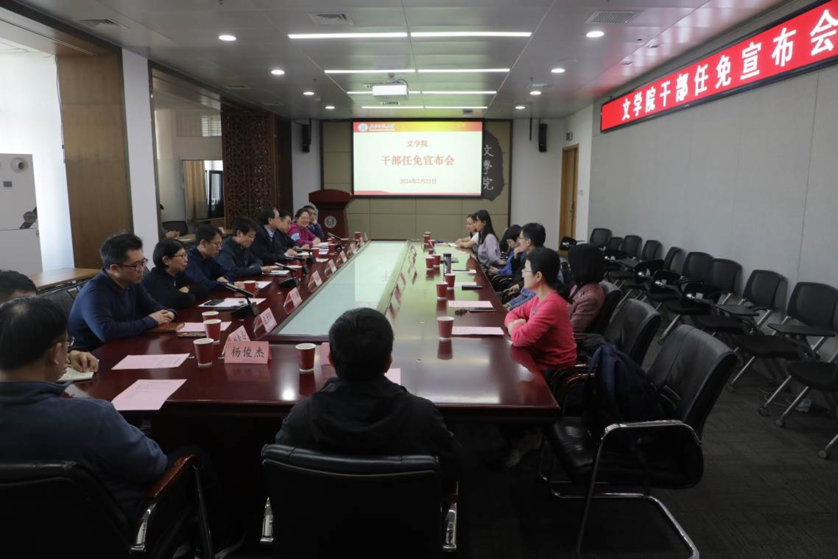 2月22日下午,北京师范大学文学院干部任免宣布会在主楼C5049报告厅举行。校党委常委、党委组织部部长张雁云,副部长马骁,文学院院党政领导班子成员、党委委员、内设机构负责人和教工党支部书记等出席会议。会议由文学院党委书记周云磊主持。