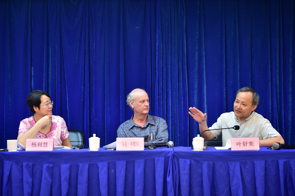 6月9日下午,著名学者、中国民间文艺家协会副主席、上海交通大学致远讲席教授叶舒宪与美国著名汉学家、俄亥俄州立大学东亚系主任、教授马克▪本德(Mark Bender)作为第九期京师论坛的主讲嘉宾,围绕“中国多民族口头传统的文化意义”的主题,展开了一场精彩的学术对话。论坛由文学院杨利慧教授主持,中国社科院文学所民间文学研究室主任安德明研究员和北师大文学院副教授康丽作为对话嘉宾参与了讨论。论坛在京师大厦第六会议室举行。
