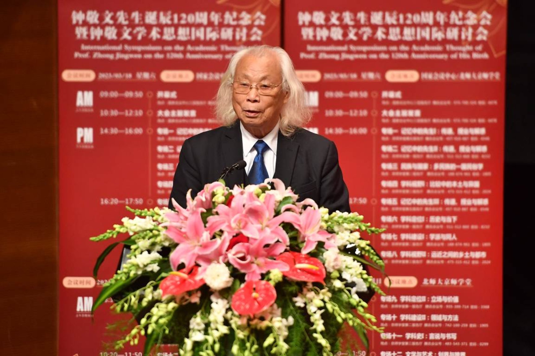 开幕式后,大会主旨发言环节由中国民间文艺家协会分党组书记邱运华主持,中国社会科学院荣誉学部委员刘魁立教授、北京师范大学文学院教授程正民、刘铁梁、董晓萍,美国印第安纳大学名誉教授苏独玉分别做了发言。刘魁立教授用生动的语言为听众展示了一位把挖掘弘扬民间文化的价值和内蕴、颂扬人民的文化创造才能作为一生的追求,矢志不渝,履践着、体现着自我生命价值的“人民学者”,彰显钟老奋斗不息的生命力和可贵精神。程正民教授回顾了钟敬文先生建立中国民俗学科的学术过程,指出正是因为钟先生学术研究中强烈的民族自信和学术自觉意识,才能在世界民俗学研究领域占有重要位置,为中国民俗学派树立了一面文化自信和学术自觉的大旗。刘铁梁教授概括了钟敬文先生晚年的理论核心,即现代民俗学对中国人认知和体认中国传统文化的作用,中国民俗学在改革开放时代如何参与中华民族文化的研究和建设,以及如何建立具有主体性的中国民俗学派。这三个核心论题为后来的民俗学者们指明了必备的中华文明主体意识和文明互鉴的视野。董晓萍教授指出,钟敬文学说是一种整体性的中国学问,钟先生对中国现代社会文化改革的信念与实践,与面向世界一切优秀文化的开放意识,使其学说与中国式现代化理念具有深刻的默契。苏独玉教授则对比了钟敬文先生与美国学者理查德·多尔森(Richard Dorson)的学术思想,认为两位学者都注重民俗学科在本国的建设,同时又对其他国家的民俗学研究和国际交流保持开放,由此对中美两国各自的民俗学发展产生了重要影响。