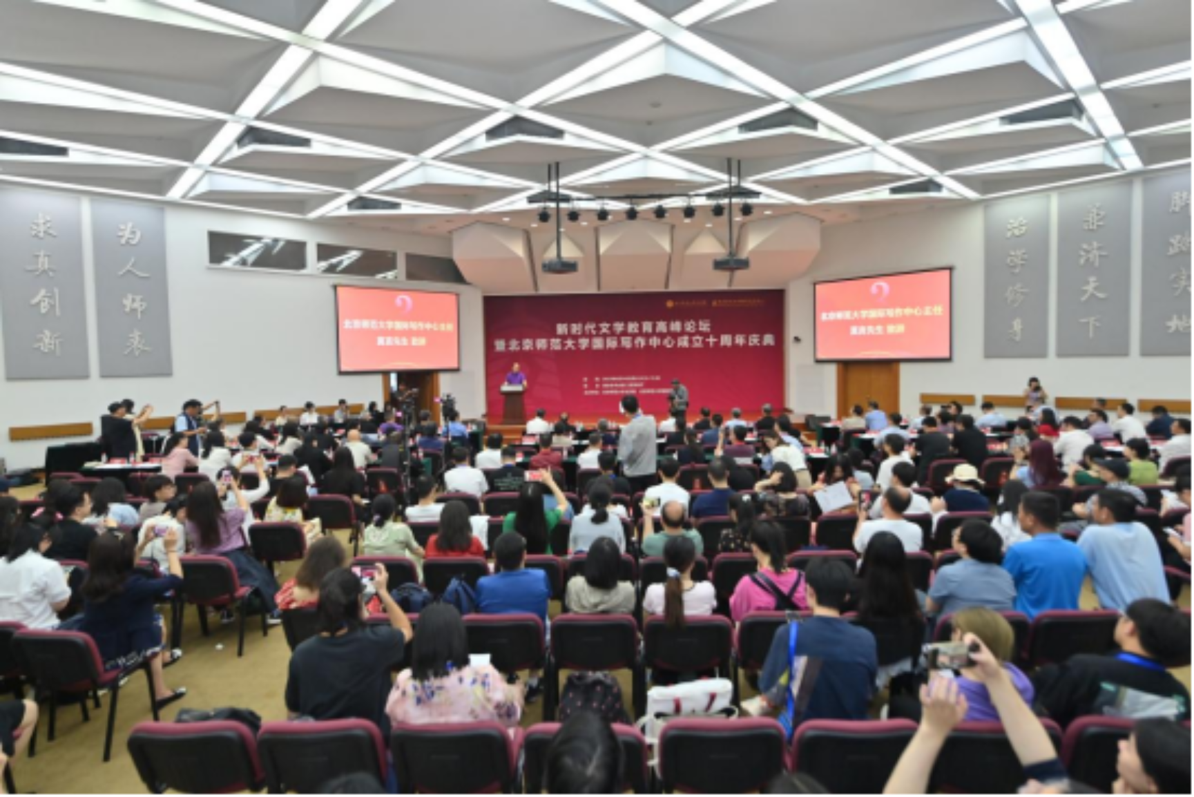 6月24日上午,“新时代文学教育高峰论坛暨北京师范大学国际写作中心成立十周年庆典”在北京师范大学英东学术会堂举办。中国作家协会党组书记、副主席张宏森,中国作家协会党组成员、副主席李敬泽,北京师范大学校长马骏,北京师范大学副校长康震,北京师范大学原副校长陈光巨,鲁迅文学院常务副院长徐可,北京师范大学文学院院长王立军、党委书记周云磊,发展规划处处长王洛忠、教育基金会秘书长李胜兰、教务部副教务长梁颖等校各处室负责同志出席会议。