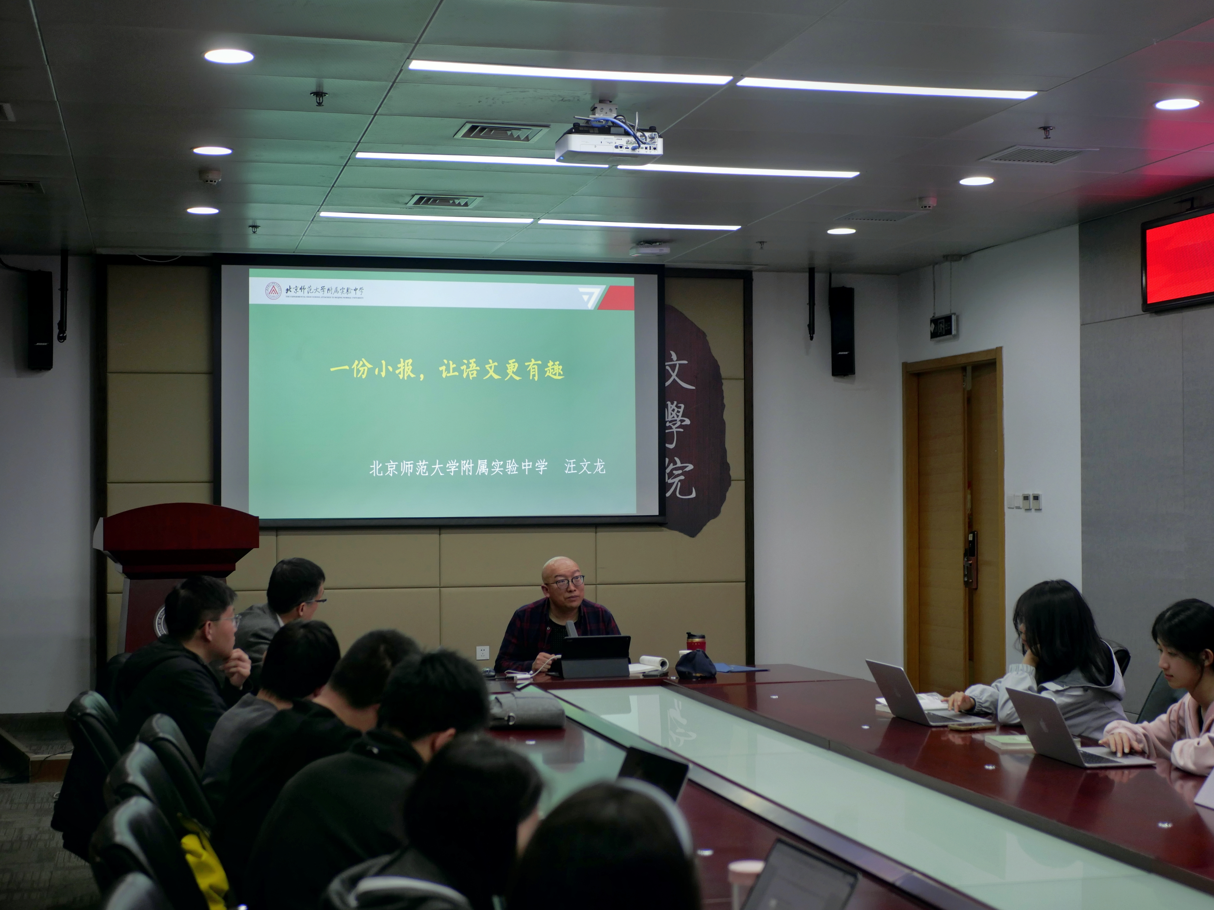 2026年4月8日,“四有”卓越教师素养工作坊暨文学院“卓师讲堂”系列讲座第六期于文学院顺利举办,北京市语文学科带头人汪文龙老师以《找到成长的抓手,做语文教育的“本手”》为题,为同学们带来了一场兼具理论深度与实践价值的讲座。本次讲座由北京师范大学文学院、北京师范大学党委学生工作部主办,文学院李小龙老师主持,崔振鹏老师参加。