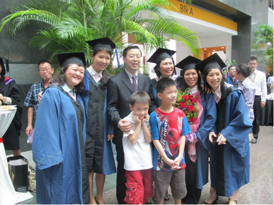 2012年10月2日,北京师范大学与新加坡新跃大学联办之 “中国语言文学硕士学位课程” 第五届硕士毕业典礼在新加坡新跃大学举行。北京师范大学党委刘利副书记、学校国际交流与合作处陈娟副处长、文学院姚建彬副院长应邀出席了此次毕业典礼,刘利副书记为获得北京师范大学硕士学位的17名新加坡学生颁发了学位证书及毕业证书。我校与新加坡新跃大学联合举办的“汉语言文学”学士学位课程最后一届10名学员一同参加了此次毕业典礼。新加坡第二副总理兼财政部长尚达曼、新跃大学校长张起杰先后在毕业典礼致辞中高度评价了新跃大学与包括北京师范大学在内的境外大学所展开的多种形式的教育合作。我校与新加坡新跃大学联合举办的“汉语言文学”学士学位课程项目始于1999年,并于2005年起合作开展硕士学位课程项目。双方合作的成果受到新加坡社会各界的关注和好评。