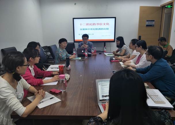 应我院比较文学与世界文学研究所刘倩博士邀请,2017年5月23日上午,美国哈佛大学博士后研究员、中国历代人物传记资料库(CBDB)项目成员徐力恒博士,到我院会议室(前主楼C区5001)做了题为《十二世纪的书信文化——宋朝和中世纪欧洲的比较》的学术讲座。讲座由马东瑶教授主持。来自北京师范大学、北京外国语大学和首都师范大学等高校的比较文学与世界文学、文艺学、英美文学、民俗学、社会学等相关专业师生,共计约30人参加了此次讲座。