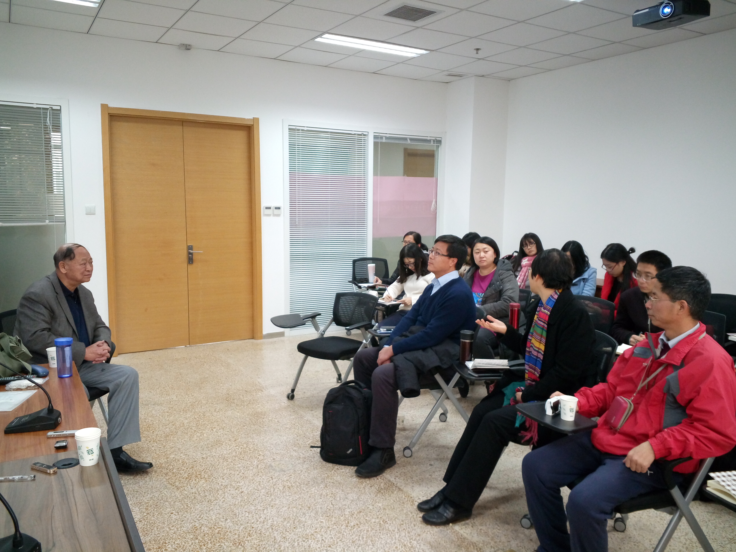 2016年11月2日下午,云南大学文学院教授、我国著名神话学研究专家李子贤教授应邀到北师大文学院讲学,在主楼C区5045会议室做了题为《神话王国的发现——我与西南少数民族活形态神话邂逅55年》的学术讲座。讲座由杨利慧教授主持,北京大学陈连山教授、中国社会科学院安德明研究员、北京师范大学康丽副教授到场参加,来自北京大学中文系、中央民族大学文传学院、中国社会科学院文学研究所和民族文学研究所、北师大文学院民间文学研究所的博、硕研究生共40余人听取了讲座。