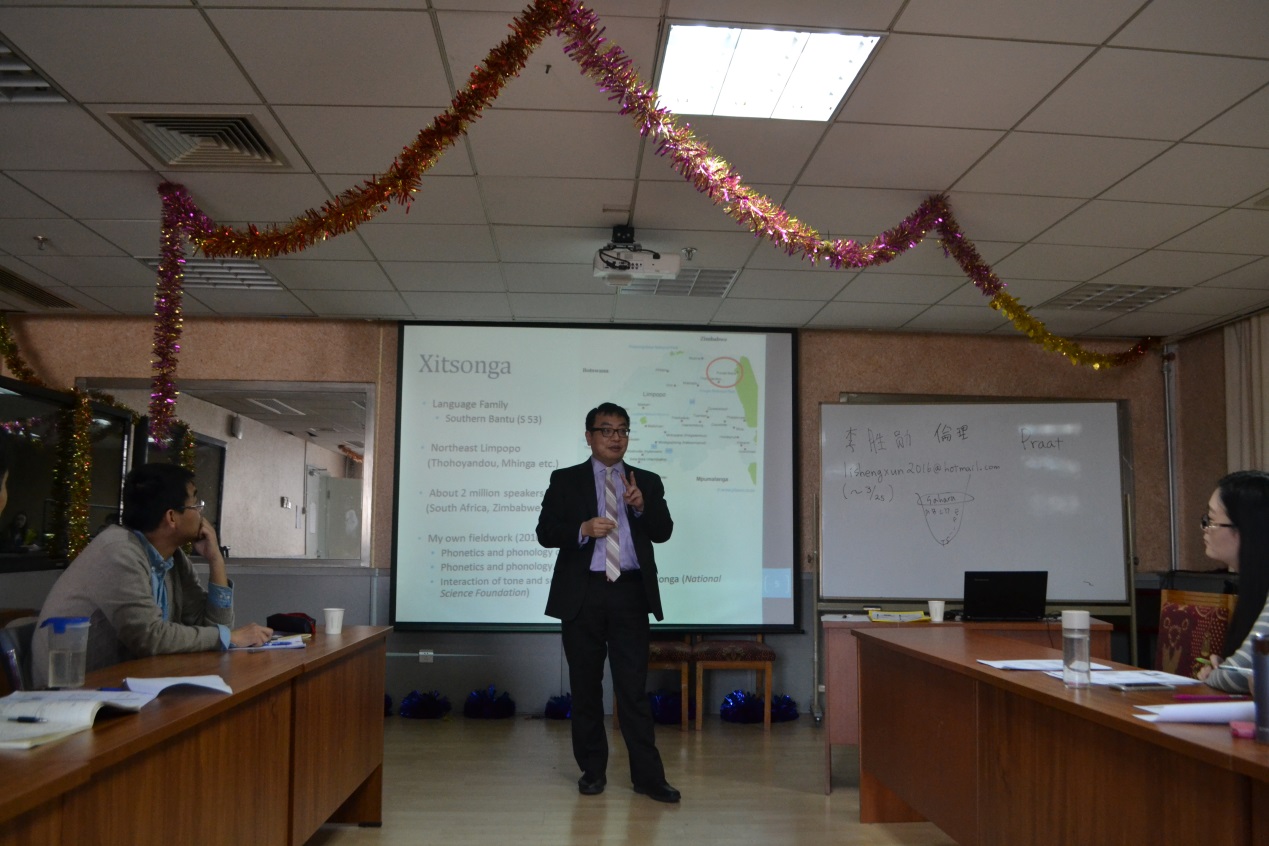 2106年3月14日,日本国际基督教大学李胜勋教授应北京师范大学文学院语言学及应用语言学研究所周士宏副教授邀请,在我校主楼B708开始了为期两周的《语言调查方法:理论与实践》的系列课程。该特别课程是认知——功能语法课程的一部分,主要讲授了语言调查与语言记录的重要原则、方法及应注意的问题。李胜勋教授曾就任于美国康涅狄格州立大学、南非约翰内斯堡大学、德国语言学研究所(ZAS),现就任日本国际基督教大学。李胜勋教授曾调查过南非境内的班图土著语、我国境内的都安、武鸣壮语和其他一些少数民族语言,具有丰富的田野调查经验。