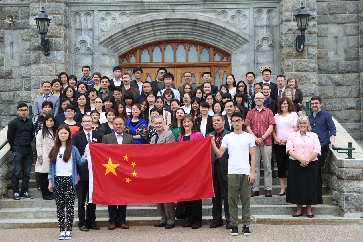 接见之后,还在圣玛丽大学主楼前举行了升中国国旗仪式。在异国他乡看着五星红旗冉冉升起,同学们的民族情怀和自豪感油然而生。主楼前,五星红旗与枫叶旗遥相呼应,将一直持续到我们学习结束。这是圣玛丽大学对我们北师大师生最隆重的欢迎和尊重,象征着两校、两国的友谊长存。