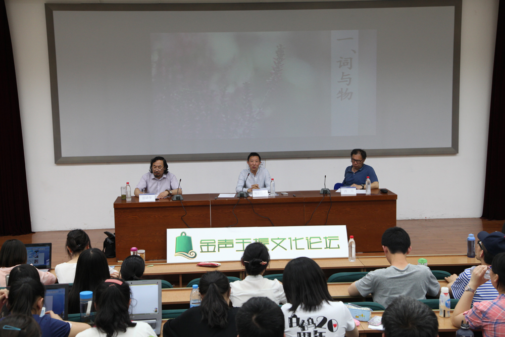 2014年5月27日晚8时,由北京师范大学国际写作中心、文学院学生会联合主办的“金声玉振文化论坛之欧阳江河专场:词与物,声与意,内视与外像——谈谈我写作的三种形态”主题讲座在北京师范大学教九502举行。著名诗人、北师大首位驻校诗人欧阳江河先生,著名诗人西川先生,北京师范大学国际写作中心执行主任张清华教授出席了本场讲座。北师大百名学子积极参与了此次对谈。