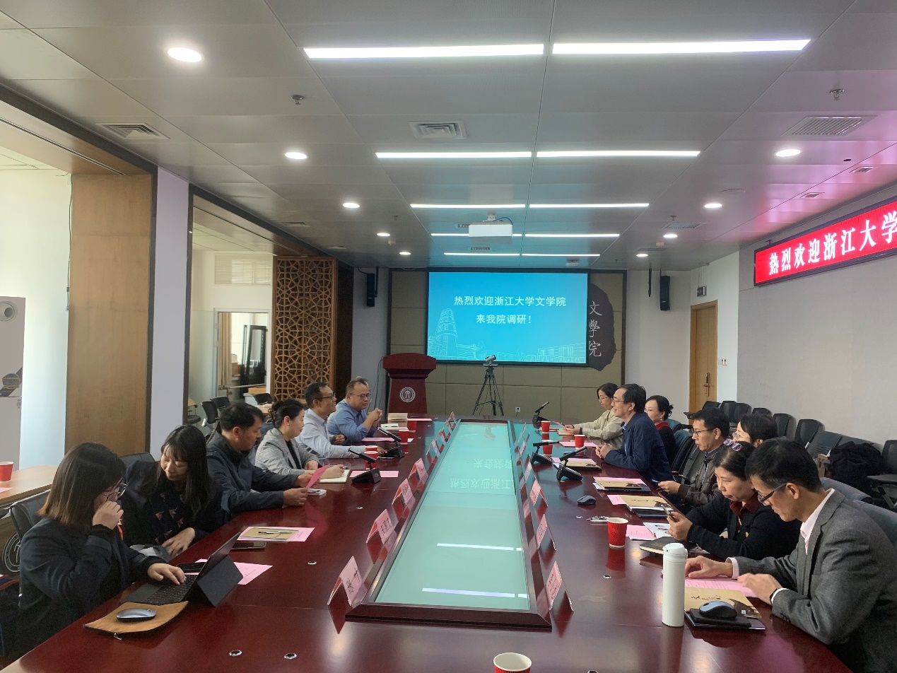 2023年10月23日下午,浙江大学文学院冯国栋院长、李铭霞书记等一行前来我院调研。交流会由党委书记周云磊主持。
