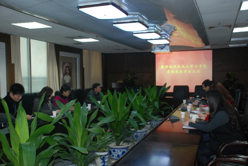 2011年3月29日上午,武汉大学文学院王怀民书记一行五人来到我院进行考察交流。双方就本科生人才培养、学生工作等问题进行了全面、深入的探讨。我院副院长王立军老师出席了交流活动。交流会由方红珊老师主持。