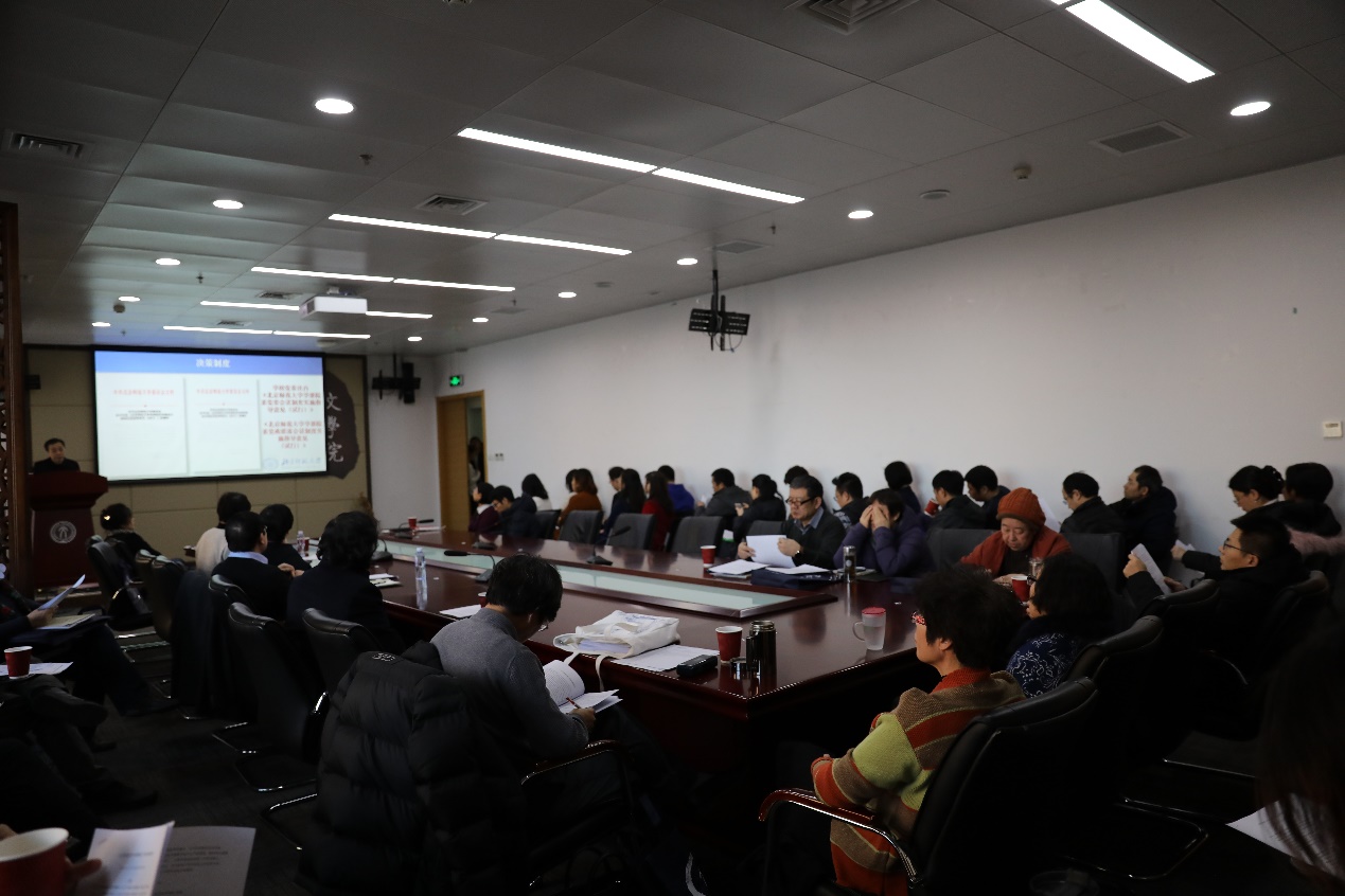 2019年1月8日上午,文学院全体教职工大会暨一届五次教代会扩大会议在文学院C5049会议室举行。