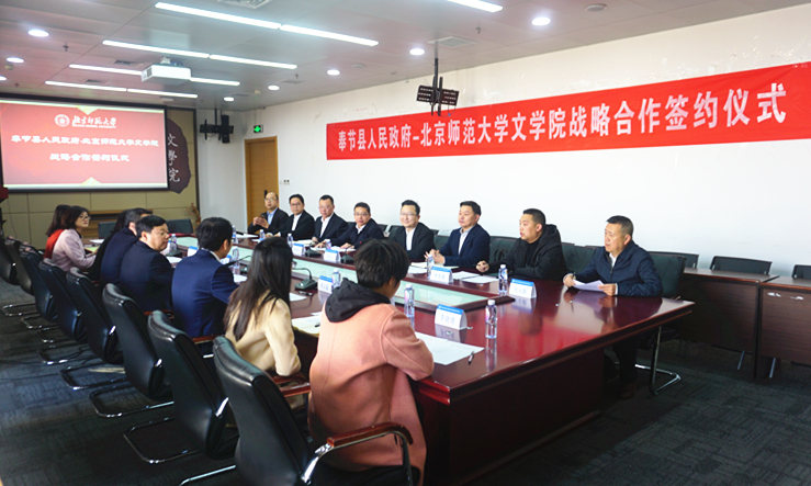 1月30日上午,奉节县人民政府—北京师范大学文学院战略合作签约仪式在北京师范大学主楼C5049举行。中共奉节县委副书记、奉节县人民政府县长祁美文、副县长李品雄、北京师范大学文学院院长过常宝、文学院分党委书记康震等双方主要代表出席签约仪式。