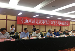 2018年8月27日,《通用规范汉字表》(以下简称《字表》)公布5周年座谈会在北京西郊宾馆召开。会议由北京语言大学中国语言文字规范标准研究中心/语言政策和标准研究所、北京师范大学中国文字整理与规范研究中心/汉字研究与现代应用实验室共同主办。