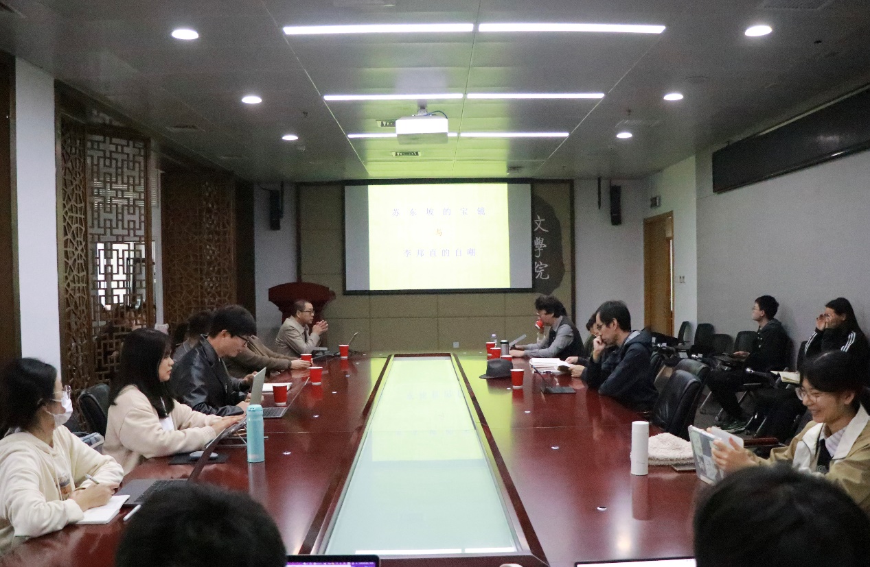 2024年10月30日下午,中华书局副总编辑、编审俞国林在文学院5049会议室带来讲座“苏东坡的宝镜与李邦直的自嘲”。本次活动由北京师范大学文学院、中国古代文学研究所、国家语言文字推广基地(北京师范大学)主办,北京师范大学文学院副教授颜子楠主持。