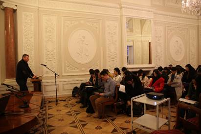 当天下午,华沙大学对外波兰语言文化中心副主任彼得·卡亚克博士主持开班仪式,热情欢迎“小文们”的到来。他首先带领同学们参观了华沙大学校史馆,并图文并茂地讲述了中波合作开展波兰语言文化教育的历史和现状。其后,在古典而庄严的讲堂中,卡亚克博士为大家介绍了随后二十天充实紧凑的学习日程和丰富多样的课程设置。他对同学们提出了中肯的建议,希望同学们都能拥有问题意识和合作学习的精神,祝愿大家能够在这二十天的时光里有所收获、有所成长。