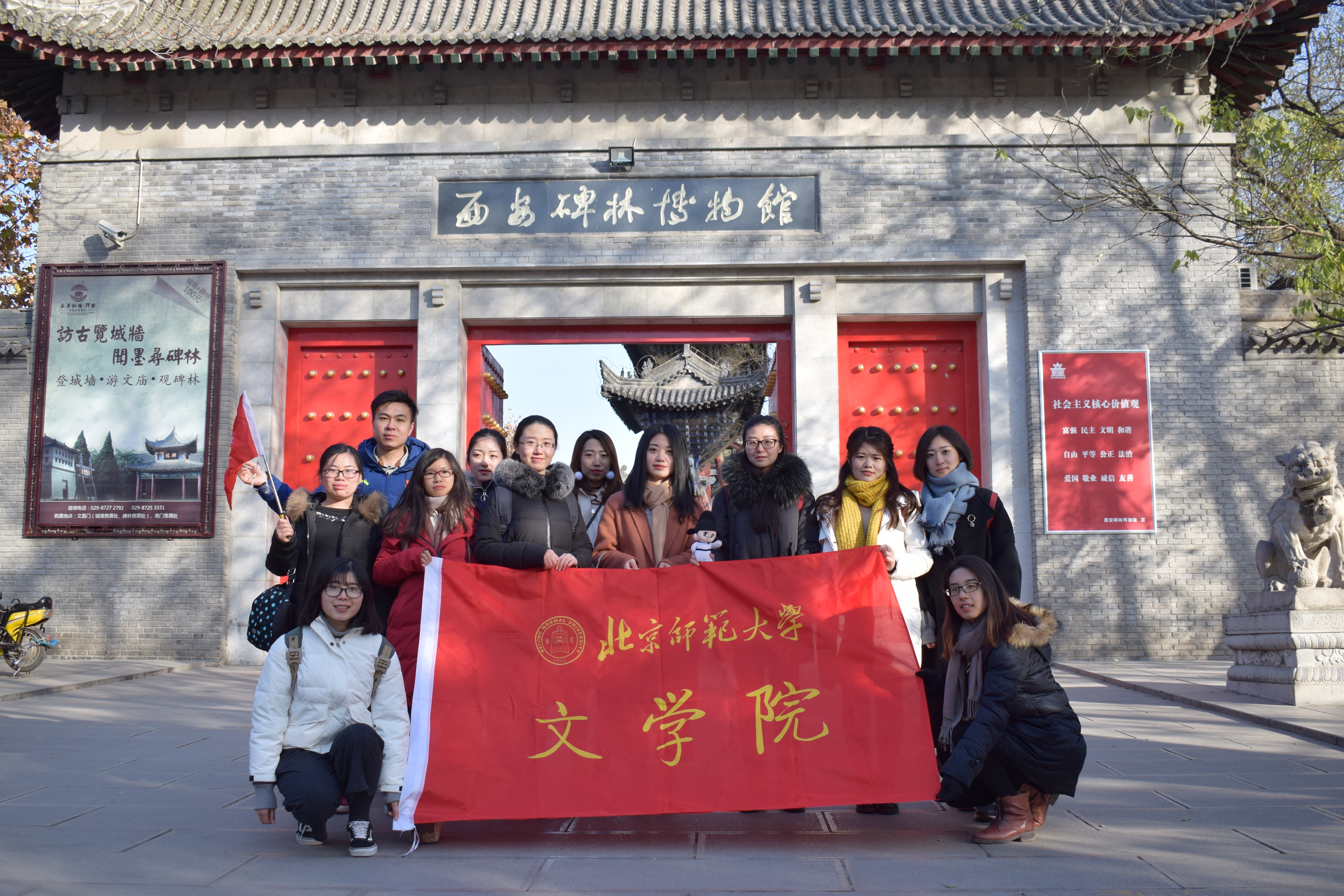 为进一步提高研究生的专业素养,12月中旬,北京师范大学文学院组织开展2017年研究生西安文化实践项目。经过院系招募、公开选拔,12位来自不同专业的文学院研究生同学在文化古都西安进行为期5天的学习之旅。