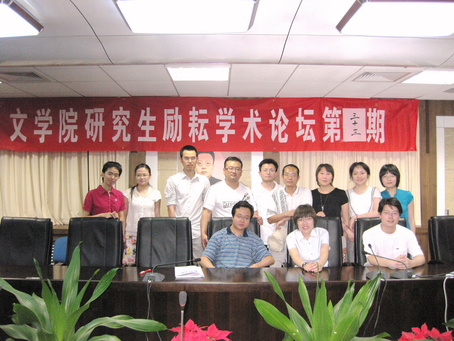 由文学院研究生会和古代文学、古典文献学专业主办的“文学院励耘研究生学术论坛第33期暨中国古代文学、古典文献学第八届博硕论坛”于2010年6月7日在主楼七层励耘学术报告厅举行。本届论坛由08级博士研究生唐元主持,古代文学、古典文献学专业的部分研究生参加了此次论坛。本届论坛出版的文集共收录本专业博士、硕士论文12篇,分编“诗学研究”、“词学研究”“文化研究”三个部分。