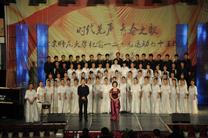 一年一度的一二•九合唱比赛,经过紧锣密鼓的准备,终于在2010年12月5日晚上7点在邱季端体育馆准时拉开帷幕。一二•九合唱比赛是北京师范大学的精品活动,在每个师大人心中都占据着举足轻重的地。文学院也凭借着雄厚的实力,再次获得了一等奖第一名的好成绩。