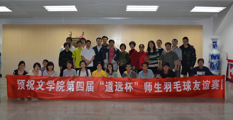为了增强师生身体素质和提升师生加强体育技能的锻炼意识、增进学院师生之间的交流,2013年4月19日晚在邱季端体育馆,文学院举办了第四届“道远杯”师生羽毛球赛。文学院教师张国龙、万建中、萧放、杨俊杰、刘斌、赖彦斌、张燕玲、陈珊、史玲玲、方红珊、马琼、刘旷野及文学院同学近60人参加此次比赛活动。