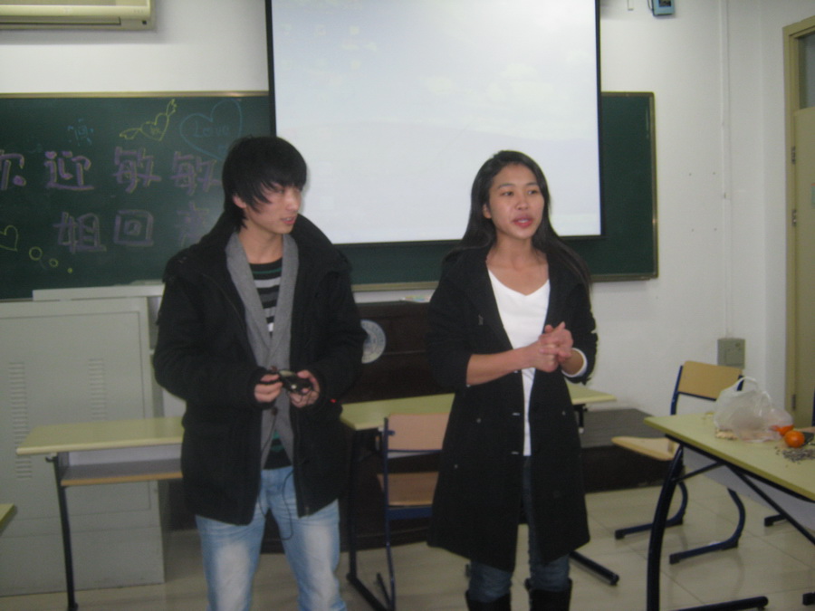 2010年12月4日晚上8点,文学院09级师范班2班为迎接其指导员蒋敏敏实习归来在教二115举办了一个欢迎会。