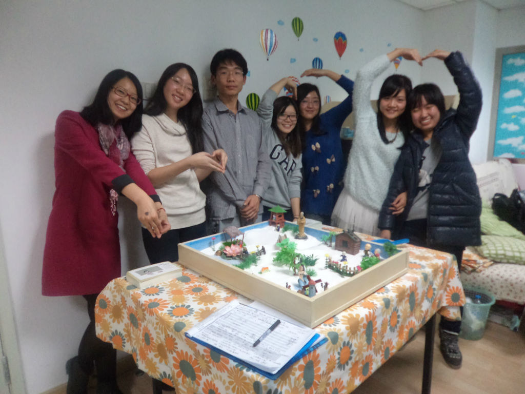 在接下来的两周中,文学院研一的硕士生党支书团体、2012级硕士生第五党支部的同学以及生活指导室助管们也陆续参加了团体沙盘活动。2013级硕士生党支书李丹在游戏结束后分享说,“沙盘游戏不在于它有多好玩,而在于能在这个静静的过程中看见一部分自己的影子。我们总觉得喧闹、热烈、刺激的游戏才更能给自己神经上的冲击和情绪上的释放,总期待更具猎奇性、更具冲击性的游戏出现,但是和那些游戏相比,沙盘的猎奇性其实一点儿也不差,它是一个内心的猎奇,反正我在玩的过程中是满心期待的”。