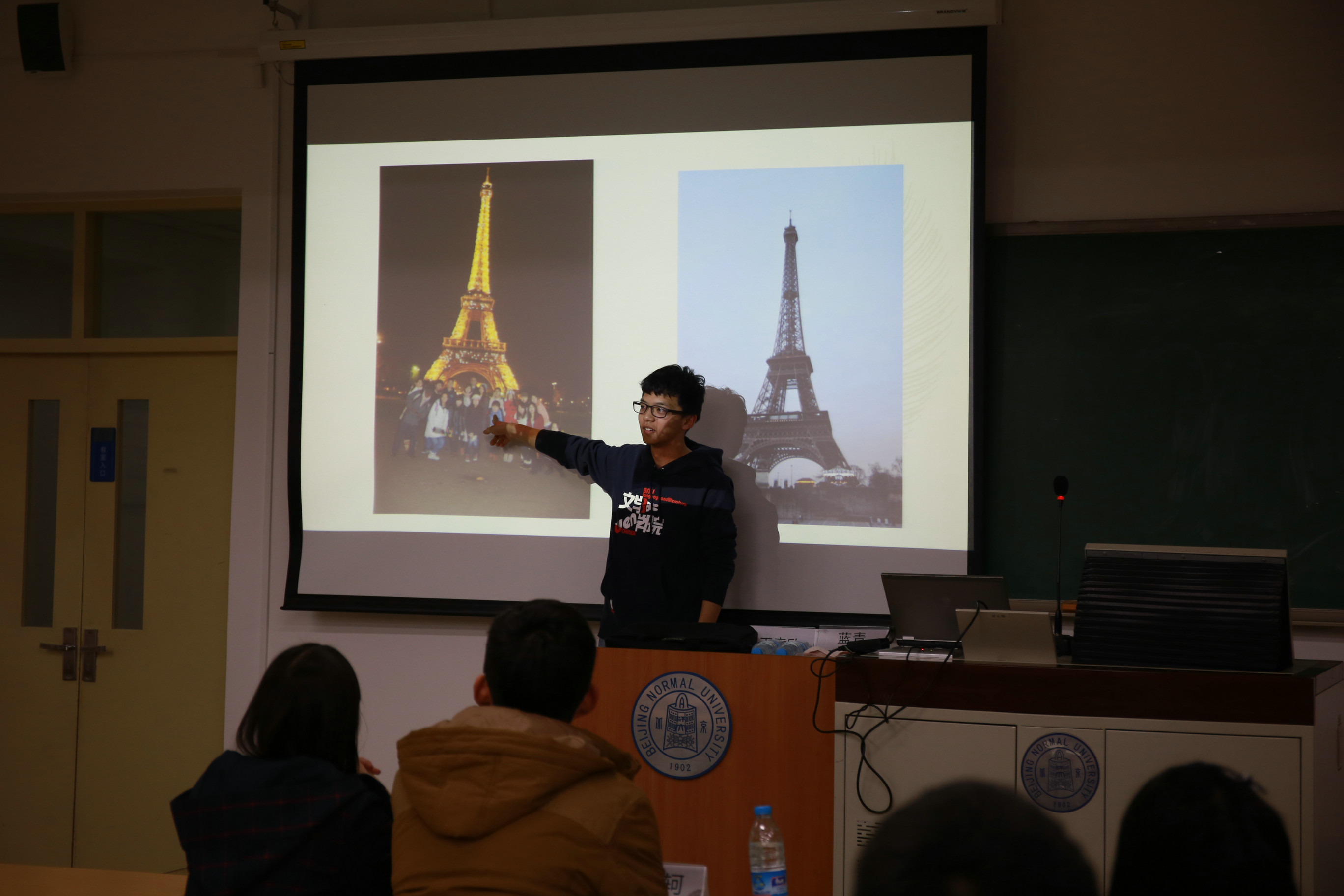 3月15日晚8:00,文学院学生会第二次全员大会在教二301教室召开。文学院学生会主席团以及各部门成员参加了会议,大会由人力资源部部长白丁元主持,全场气氛热烈。 大会首先逐一展示了学生会各部门成员的假期生活照片。大家分享的照片内容异彩纷呈,有的是家乡物景、旅游风光,有的是家中爱宠、同学聚会,也有人带来了趣味搞怪的合影以及《十年高考•分类解析与应试策略》般令人会心一笑的照片。欢乐满满的照片分享环节,既表现了学生会成员欢乐充实的寒假生活,也加深了大家对彼此间的了解。 轻松愉快的展示后,主席团上台发言。副主席高梦翡结合自己的经历,向大家传达了“享受生活,居安思危”的愿景,并谈道:“如果付出,给予的东西就会降临到你身上。但你是可以选择的,可以选择拒绝,选择接下来的方向。当你思考的时候,细小的每一步都将影响你的决定。” 副主席刘一轲首先对部长及干事们做过去的半年中的学生会工作予以肯定,接着他对每位学生会成员表达了深切的期待,希望大家都能在这里“培养沟通交流的能力,勇于走出自己的小世界”,并鼓励大一的干事们“在作为干事的最后一个学期,不管将来去做什么,要找到自己的兴趣和能够出力的地方。学生会永远是你们的家。” 随后,大会进入了游戏环节“我做你猜”——六七人成一列,依次通过身体动作传递信息,由最后一个人猜测所传递的词语。第一轮由部长们上台示范,给出的词语是“望子成龙”。头一个表演者以近来热门的洗发水广告指代“成龙”,不料就此陷入困境,每每到后来者不明所以地撩头发,台下便笑声连连,最后不出意料地猜错了,主持人也只好自嘲是“失败的范例”。二三轮的词语分别是“大白”和热门电影名称,主席团、部长、干事们一起组队,全程手忙脚乱,好不热闹,一位干事在描述“白”时情急中还脱口而出“和我相反”,引起台下欢笑。 作为本届学生会的第二次全员大会,此次大会增进了学生会成员间的感情,增强了学生会成员的院会归属感,提升了整个院会的凝聚力,也为接下来的工作奠定下良好的基调。当晚9:30,文学院学生会第二次全员大会圆满结束。 稿件:叶丹莹 摄影:李幸雪 (北师大文学院学生会新闻部)