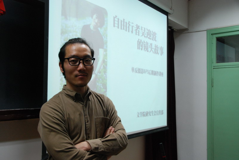 2013年12月7日下午2点半,文学院研究生会宣传部主办的“自由行者吴迎波的镜头故事——单反摄影及PS后期制作讲座”如约在电子楼104教室举办。主讲嘉宾吴迎波是文学院2011届毕业 生,他热爱摄影,曾于2010年在主楼四季厅成功举办个人摄影展,曾推出“北师大110周年特辑”系列明信片,也曾被评为“感动师大”新闻人物。讲座开始,吴迎波师兄以“四年·四天”为题,用拍摄的照片细数了他在北师大的四年学生生活,回忆了他在北师大行走、拍摄的点滴,带领观众一起走进了一个如诗如画般的光影世界。随后,吴迎波师兄分别讲述了纪实摄影和艺术摄影的拍摄技法,借助其摄影作品具体分析了晚会拍摄、会议拍摄、突发事件拍摄以及风光拍摄、人像拍摄在角度、光线、构图等方面需要注意的问题,并针对现场观众所关心的参数设置等问题进行了细致的讲解。在PS后期制作方法部分,吴迎波师兄采用案例分析的方式,选取了现场观众提供的照片进行现场点评及操作演示,讲解了如何运用绘图软件,后期处理摄影作品的亮度、色彩、素材等。