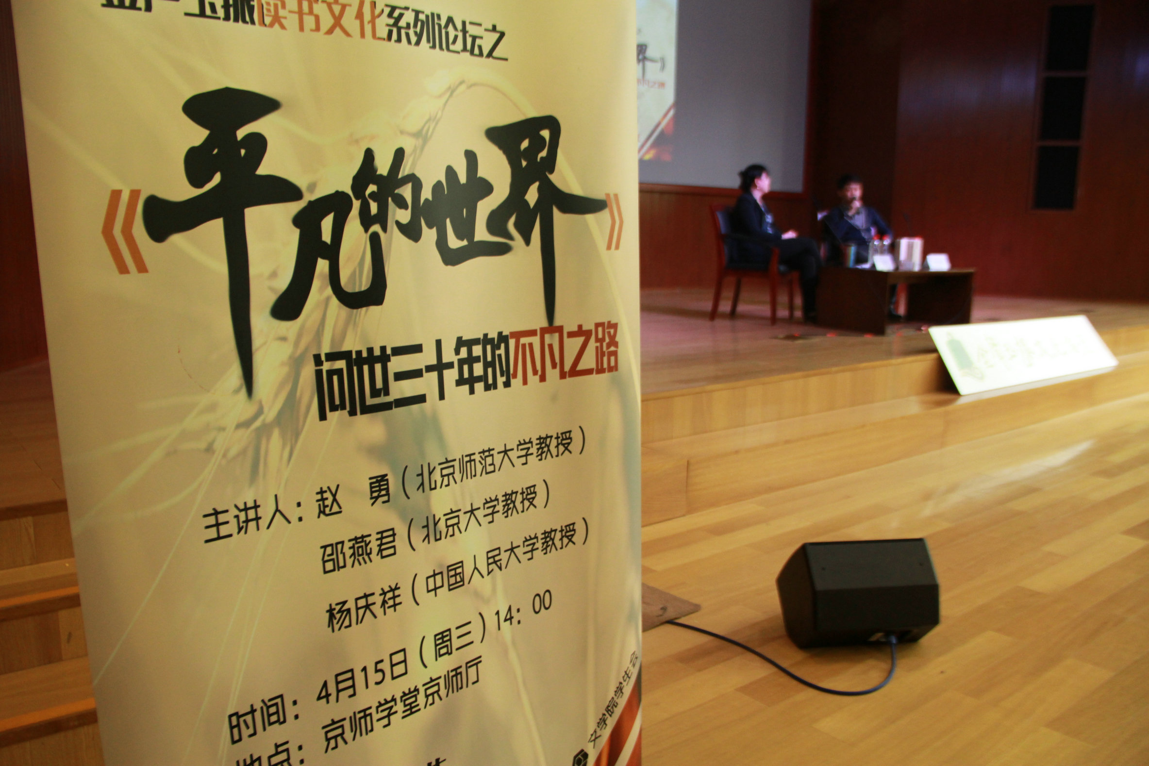 2015年4月15日下午13时30分,由北京师范大学、北京十月文艺出版社主办,党委宣传部、文学院学生会承办的的第八届北京大学生读书文化节、金声玉振读书文化系列论坛之“《平凡的世界》问世三十年的不凡之路”专场在北京师范大学京师学堂京师厅举行。北京大学教授邵燕君、中国人民大学副教授杨庆祥围绕路遥名作《平凡的世界》展开精彩对谈。