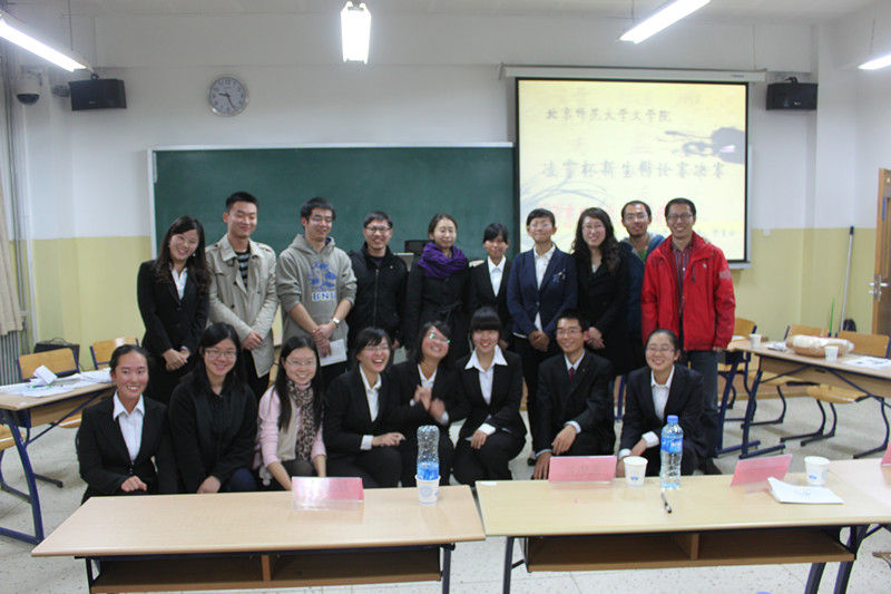 2012年11月3日晚上八点,北京师范大学文学院新生辩论赛“凌霄杯”决赛在艺术楼401室如期举行。站上新生辩论赛决赛舞台上的双方队伍分别为2012级文学院一班代表队和二班代表队。辩题为“流行文化是推动还是阻碍人文精神的发展”。出席比赛的嘉宾有一班班主任胡嘉嘉,研究生会秘书长、二班班主任周云磊,文学院分团委书记马琼,一班辅导员耿喆。前校辩论队队长王依然,文学院资深辩手邓沫南、吴鸿亮、陈航直、姜天翔担任这次比赛的评委。最终在这场比赛中正方一班代表队赢得了本场比赛,来自二班的反方三辩麻楚杭获得了最佳辩手称号。