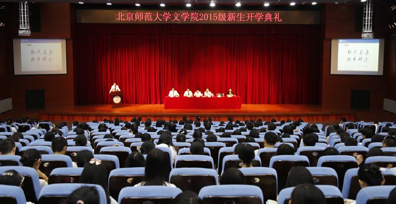 2015年9月8日上午9时,北京师范大学文学院2015级新生开学典礼在我校学生活动中心隆重举行。2015级全体本科生、研究生以及留学生共400余人参加了开学典礼。文学院院长过常宝教授、副院长马东瑶教授、著名学者刘勇教授、分党委副书记周云磊老师、方红珊老师等院领导和部分辅导员代表出席了本次典礼。典礼由文学院分党委书记王立军教授主持。