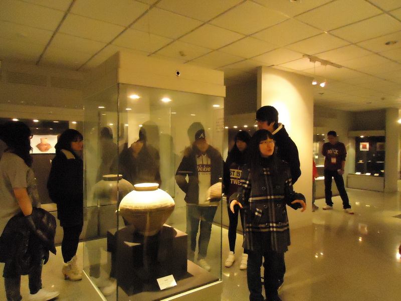 下午三时,二十多名韩国留学生聚集在科技楼,满怀期待的进入文博馆。在讲解员的耐心而认真的讲解下,来自异乡的他们领略到了华夏五千年的风貌。从石器时代的石器到盛唐的唐三彩再到明清的彩瓷,无不激起留学生们的好奇与赞美。参观结束后,留学生部的同学还增加了“夺宝奇兵”环节,通过描述让参观者从馆内找出对应物件。留学生们十分积极的参与,获胜者得到了脸谱、剪纸等颇具特色的纪念品。