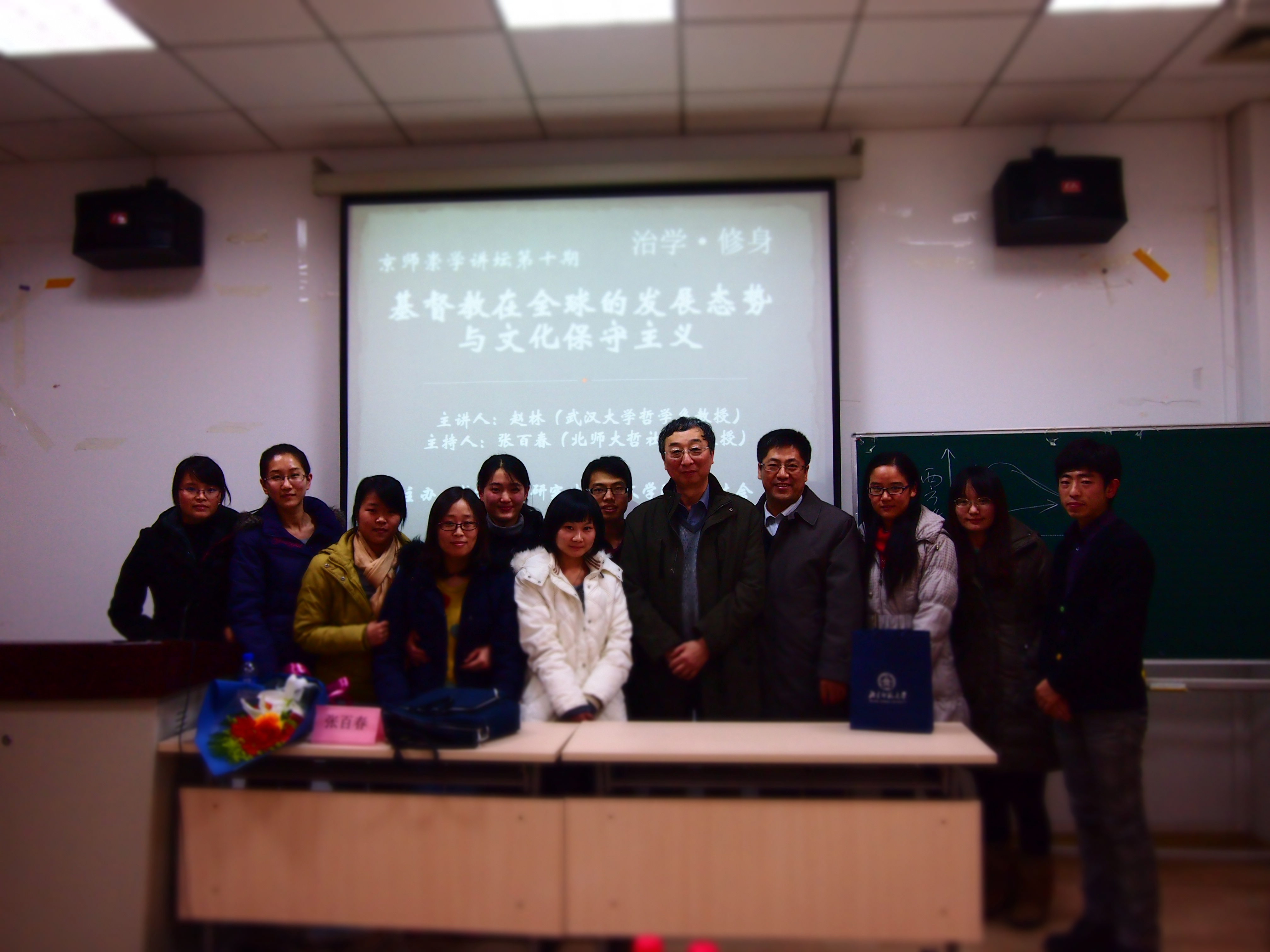 在武汉大学学生中流传着这样一句话:“四年上学期间没听过赵林老师的课,就等于没上武汉大学。”12月8日晚八点,京师崇学讲坛第十期就邀请到了这位来自武汉大学哲学学院的教授、博士生导师赵林老师,为同学们带来了一场名为《基督教在全球的发展态势与文化保守主义》的精彩讲座。此次讲座由哲学与社会学学院、文学院研究生会举办。