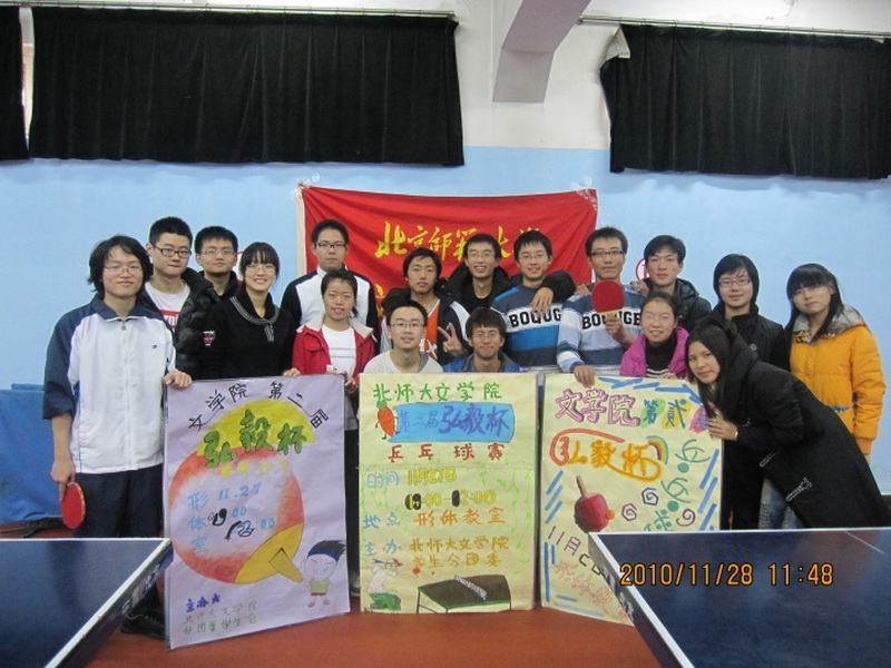 2010年11月28日上午,文学院“弘毅杯”乒乓球比赛在校乒乓球训练室举行,包括韩国留学生在内的文学院同学以高度的热情积极参加了比赛。