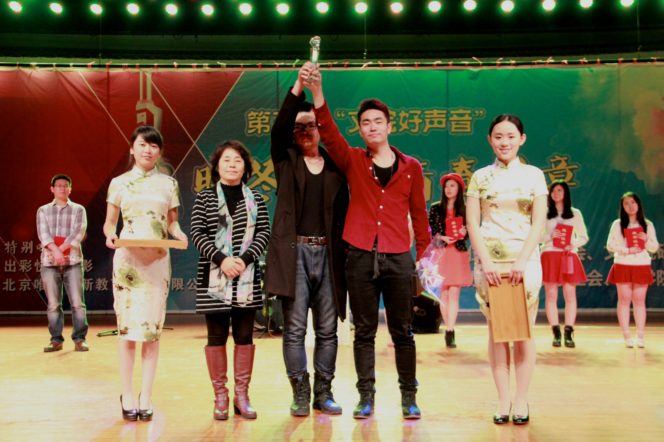 组合对唱环节同样异彩纷呈,来自不同年级的选手联袂演唱,完美配合,或轻松幽默,或悠远动情,更有7号、9号选手强强联合的《因为爱情》,为现场观众带来一场听觉盛宴。比赛中采用的专业评委与大众综合多因素打分的评分形式保证了结果的公平性,也使现场观众体会到与选手的互动。最终,在经过选手独唱,组合对唱,大众评审,微信投票等环节激烈比拼后,由本科生常宇峰,邢楷组成的9号 “新生活运动”组合夺得桂冠,而7号选手王濛和10号选手张华分别夺得亚季军,最佳人气奖则花落2号本科生选手陈唯莹和4号研究生选手侯润婕。在意犹未尽的咏叹中,北师大文学院第三届“文院好声音”落下帷幕,让我们共同期待来年的精彩!(文学院新闻部)