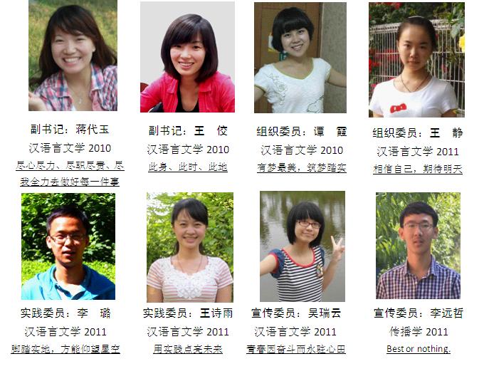 2012年9月23日,文学院第五次团学代会胜利召开,根据大会通过的选举办法选举产生了新一届文学院团委委员。附录委员介绍如下: