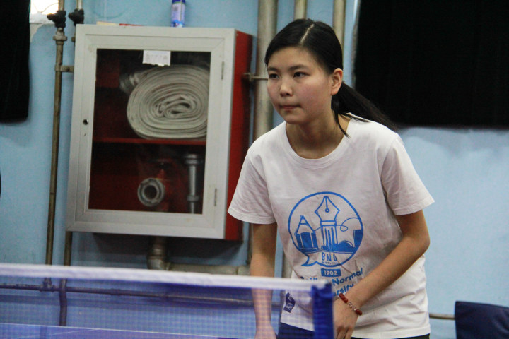 最后上场的是2014级学生、文学院学生会体育部成员唐心语。她在面对对手的快球时,以扎实的基本功很好地反击。她沉着冷静,果断干练,击球快速且有力,长球、短球、上弦、下弦都应对自如。最后,为决赛拿下第三分。