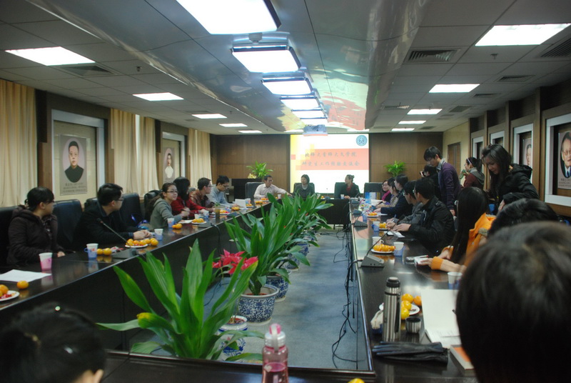 方红姗老师代表北师大文学院对首师大同学的到来表示热烈欢迎。周云磊老师与负责首师大研究生工作的刘利老师就两校文学院研究生的专业组成、机构设置等情况作了基本介绍。围绕“如何开展研究生学术活动”、“如何提高研究生的就业实践能力”、“如何对研究生会成员进行人事考评”、“如何调动博士研究生的活动积极性”等实际问题,双方作了交流探讨。各位参加交流的同学踊跃发言、互动交流,根据切身工作经验进行讨论,为日后研究生工作的开展提出了诸多宝贵的意见和建议。周云磊老师在总结中提出,如何有序有效的开展研究生管理工作,如何在管理中注入温情更多体现文学院的特色,如何让学生干部在服务同学的同时成就自我,如何让所有同学都有发展,如何促进学院进一步发展,是研究生组织需要不断思考和探寻的问题。随后,首师大与会成员参观了文学院“生活指导室”。