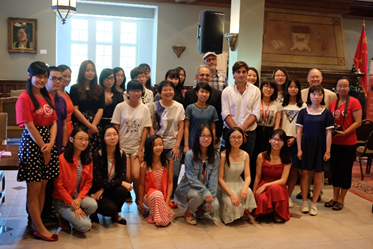 晚餐过程中,同学们三五成群,和各位教授一起谈天说地,不时发出阵阵欢快的笑声。