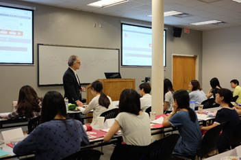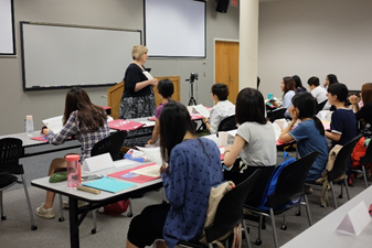 18日上午,开始正式的课程。老师们为大家分发了学习资料和俄克拉荷马大学纪念品。随后,Tina、Kylie和Cory等老师为同学们介绍学习规划和日常生活等方面的注意事项。期间,副校长还特意来到教室向大家表示欢迎。