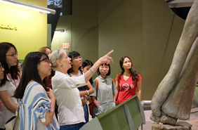 随后,Sharon Gou老师和许小颖老师带领同学们在自然历史博物馆进行详细地参观,同学们在博物馆中观看了地质演变的相关资料、远古以来的各种生物、俄克拉荷马各地区的生态环境示意模型以及伽利略展和印第安文化展。同学们还在博物馆中看到了从中国发掘出的保存完好的恐龙化石。