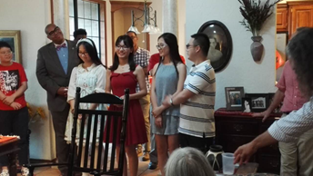 餐后,大家来到客厅,RC Davis-Undiano教授向大家表示热烈的欢迎。在场的各位教授向大家简单介绍自己教授的课程后,送上了自己对同学们的祝福,希望同学们享受在俄克拉荷马大学的学习和生活。刘颖琪和李瑜涵代表大家向RC Davis-Undiano教授和各位教授表示感谢,并望大家能有自己独特的记忆。