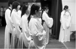 2011年元旦,首都图书馆,2011年“首图讲坛•乡土课堂”开讲仪式上,北京师范大学南山诗社表演经典古诗词吟唱。当日,数百名市民一大早就来到首都图书馆,参加2011年第一期 “首图讲坛•乡土课堂”。自2003年创办以来,“首图讲坛•乡土课堂”每周六上午9:30准时开讲。新的一年,“乡土课堂”将举办讲座50场左右。(本报记者 薛珺 王荟 摄影报道)