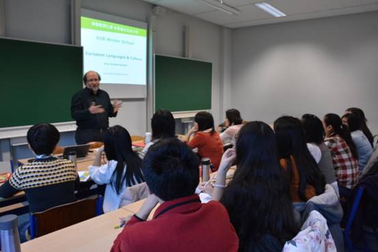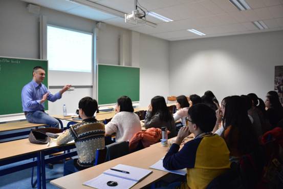 在课堂上,来自布鲁塞尔自由大学的教授们全力为同学们展示了一个全景式的欧洲。他们的课程涵盖欧洲的文化、语言、教育体制、现代美术和艺术教育等多个方面。精彩的讲解,让同学们从西方视角感受了不一样的欧洲,也对欧洲这片古老又生动的大陆有了全面和全新的认识。同学们在课堂上还积极与教授们互动,提出问题和见解,在丰富视野的同时,也提高了自己的英语表达能力。