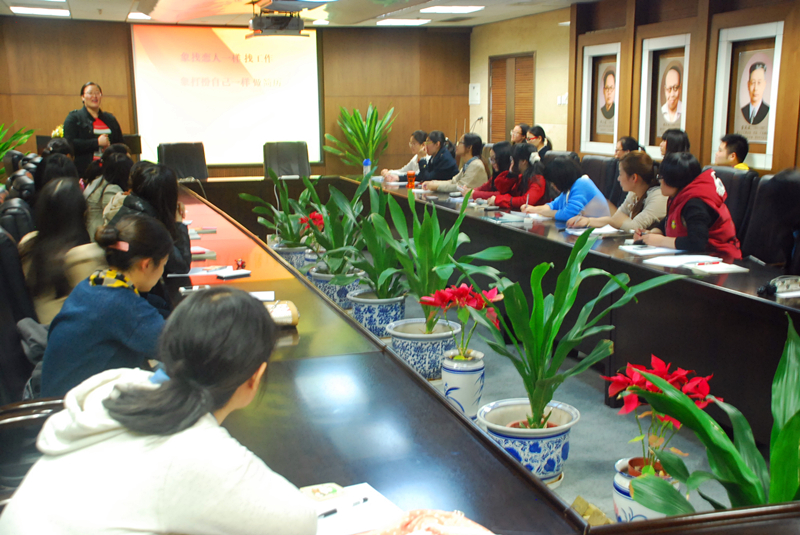 2013年10月16日晚7点,系列活动的第一场在主楼700A励耘学术报告厅举办。原文学院分团委书记、现任雪绒花心理咨询中心生活督导室督导的胡志峰老师为大家做了“简历制作与面试礼仪指导”的讲座。