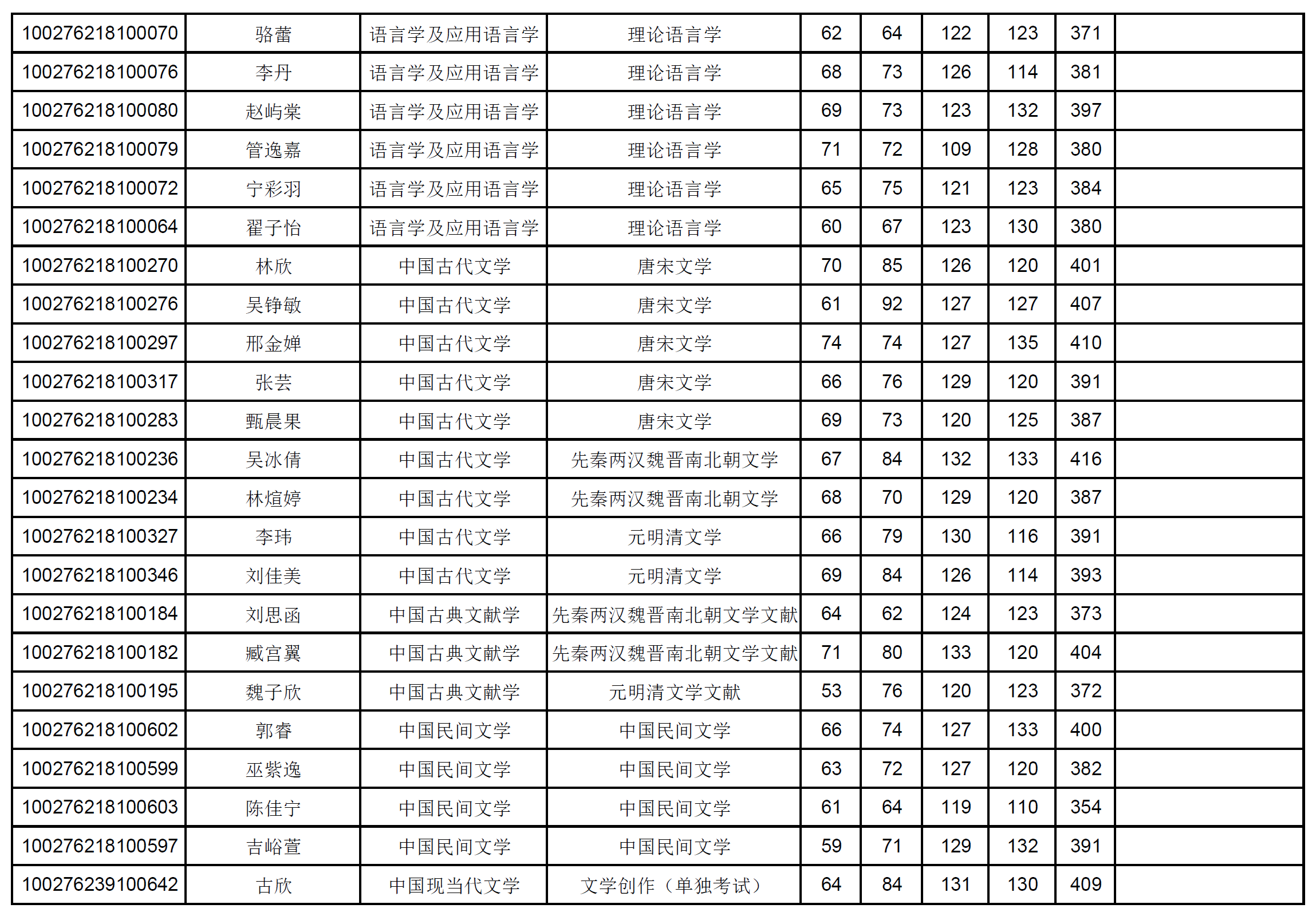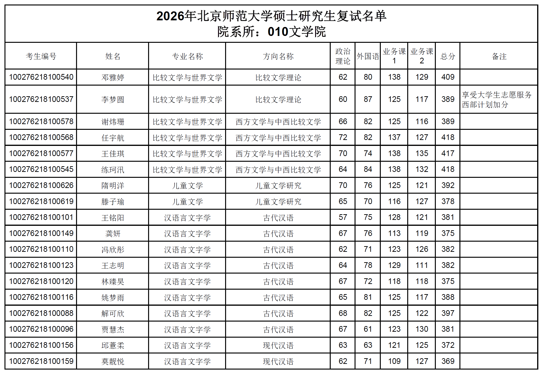 2026年文学院硕士研究生招生复试名单公示